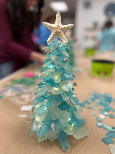 We’ll bring the beach to you—literally! Our team will come to your location, fully stocked with all the supplies you and your friends need to create your very own Sea Glass Christmas Tree masterpiece.